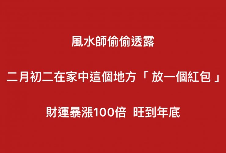 風水師偷偷透露:二月初二在家中這個地方「放一個紅包」財運暴漲100倍,旺到年底!