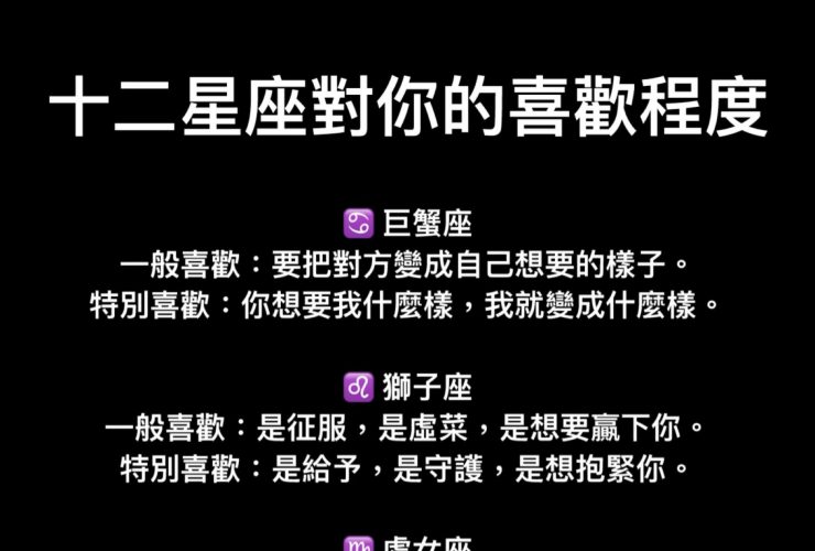 十二星座對你的喜歡程度!