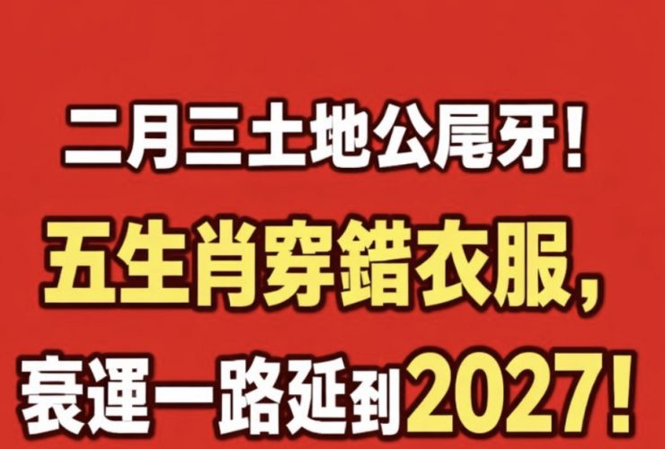 二月三號土地公尾牙!五生肖穿錯衣服衰到2027!