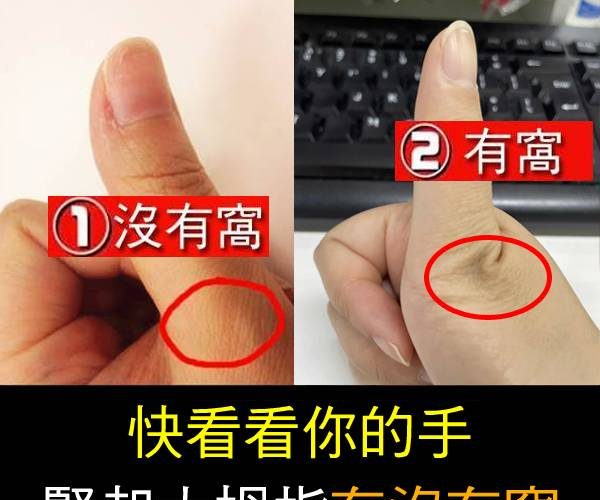 快看看你的手,豎起大拇指有沒有窩,預示你是好命還是爛命!