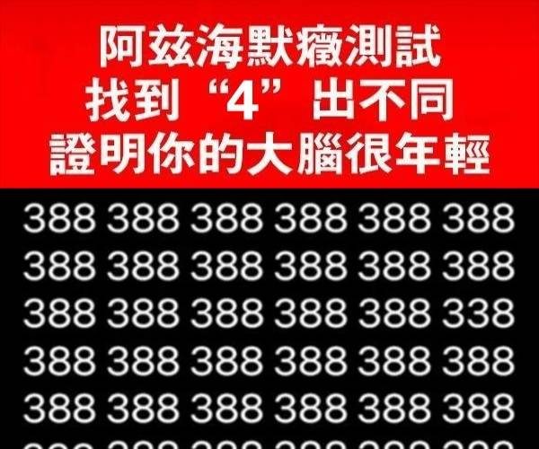 阿茲海默測試,找到「4」出不同!證明你的大腦很年輕