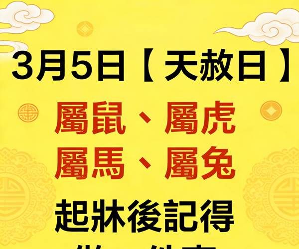 3月5日【天赦日】屬鼠、屬虎 屬馬、屬兔起床後記得做一件事,乞丐也能變富翁