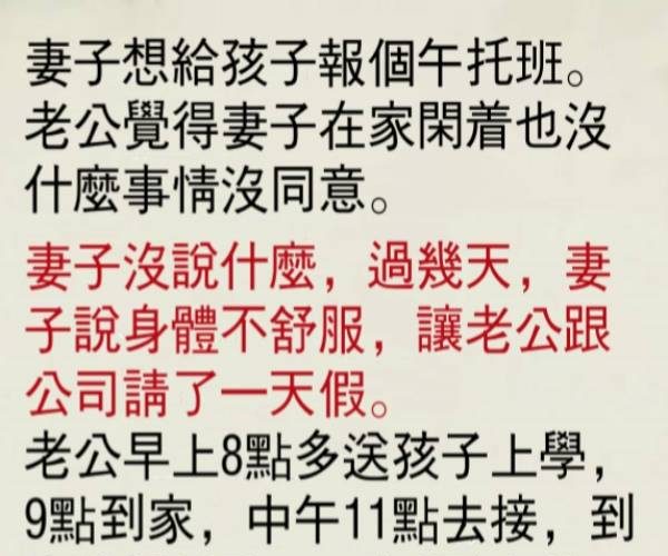丈夫的話讓妻子幡然醒悟!