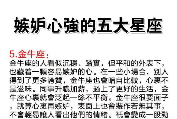 嫉妒心強的五大星座