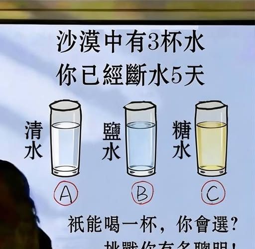 沙漠中有三杯水,你已經斷水5天!只能喝一杯,你會選?挑戰你有多聰明!