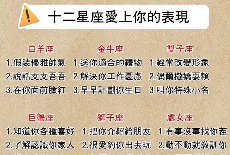 十二星座愛上你的表現!