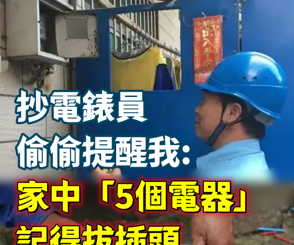 抄電錶員偷偷提醒我:家中「5個電器」,記得拔插頭,能省千元電費