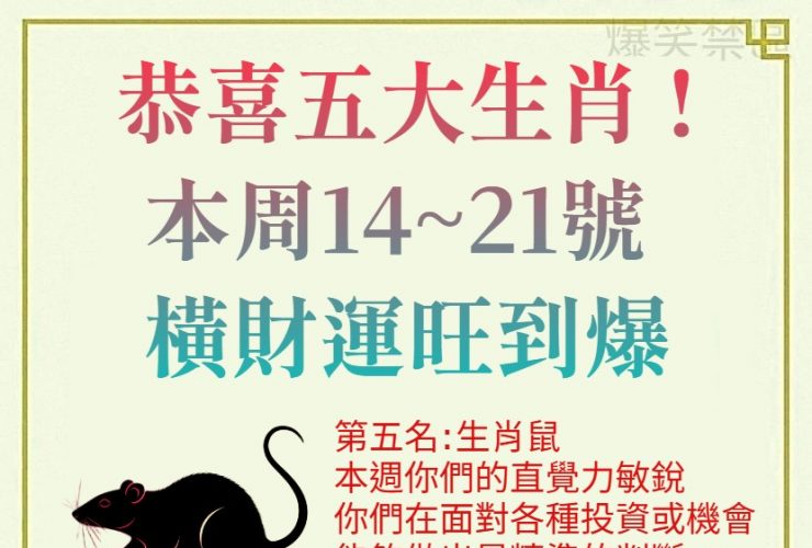 恭喜五大生肖!本周14~21號橫財運旺到爆