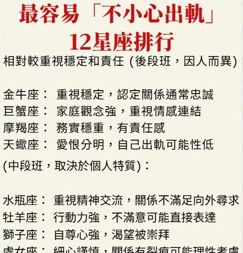 最容易「不小心出軌」的12星座排行