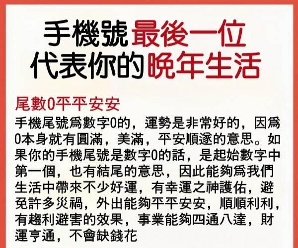手機號最後一位代表你的晚年生活!