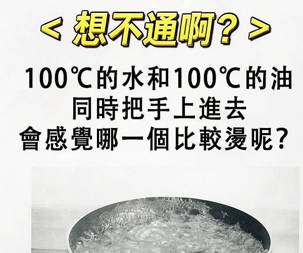 100℃的水和100℃的油,同時把手上進去,會感覺哪一個比較燙呢?測測你的智商有多高!