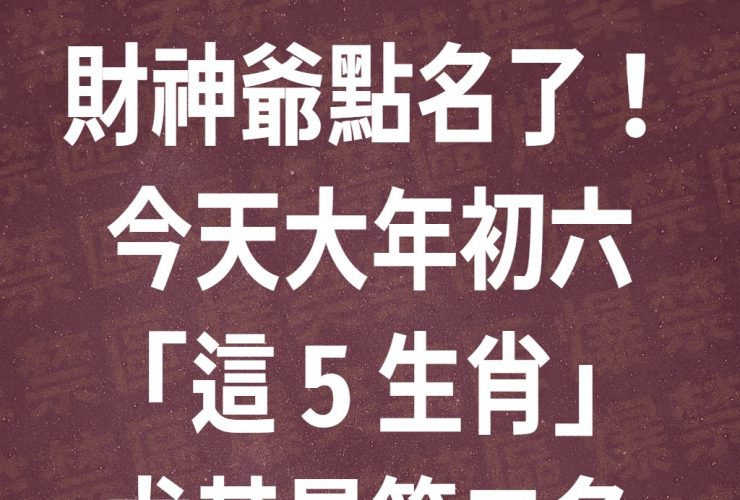 財神爺點名了!今天大年初六「這 5 生肖」尤其是第二名,有望中大獎!
