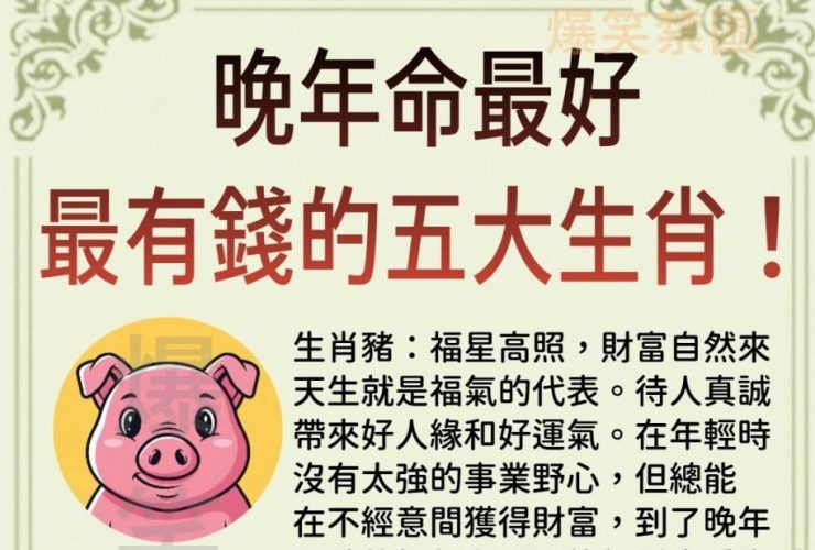 晚年命最好,最有錢的五大生肖!