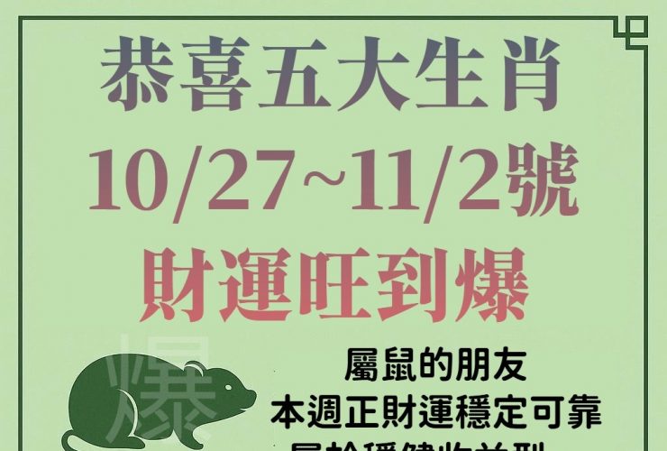 本周五大生肖 10/27~11/2號 財運旺到爆!