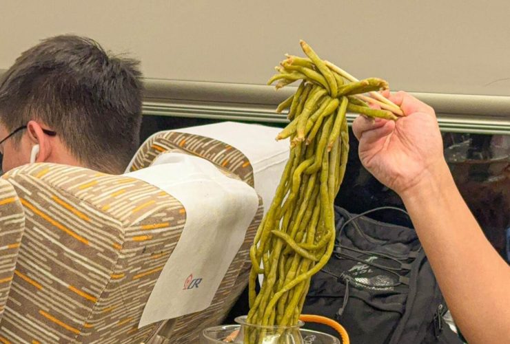 到底是什麼!車廂撞見乘客「夾一根根綠色長條物」狂嗑,網一看秒認出「周圍人開始罵了」