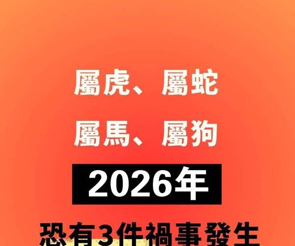 「 屬虎、屬蛇、屬馬、屬狗」2026年恐有3件禍事發生,千萬要留心!