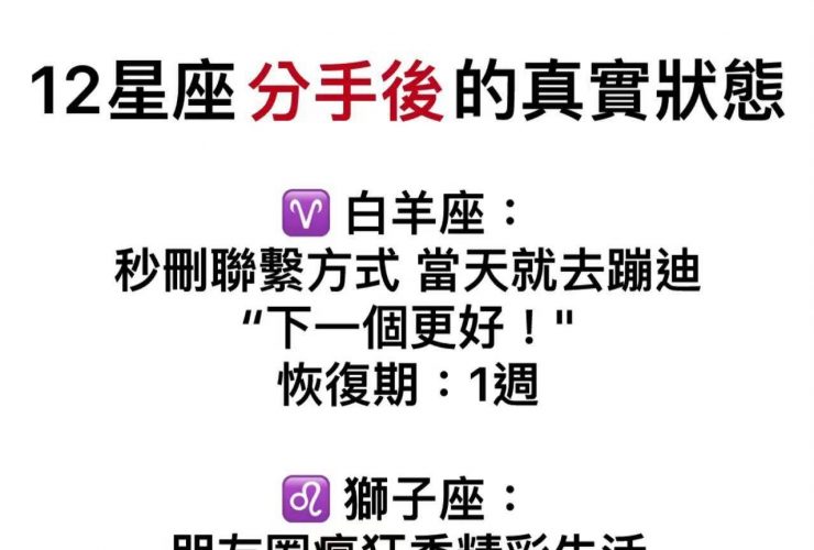 12星座分手後的真實狀態!