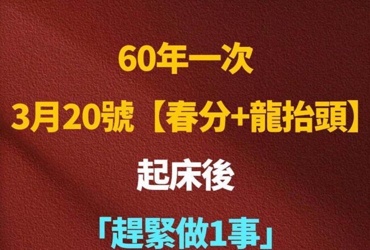 60年一次,3月20號「春分+龍抬頭」,起床後「趕緊做1事」再倒楣也能逆天改命,乞丐也能變富翁!