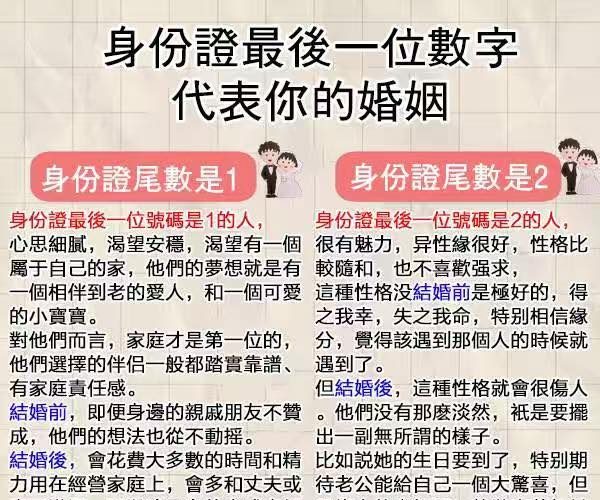 身份證上有幾個「2」?能看穿你這輩子的婚姻!