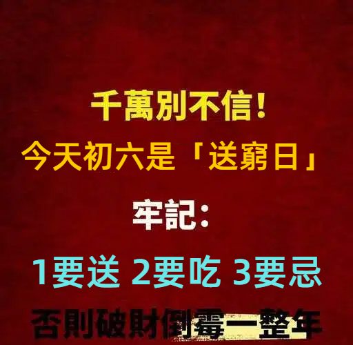千萬別不信!今天初六是「送窮日」,牢記:1要送,2要吃,3要忌,否則破財倒霉一整年