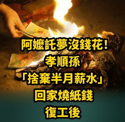 阿嬤託夢沒錢花!孝順孫「捨棄半月薪水」回家燒紙錢,復工後「才知躲過大劫難」….