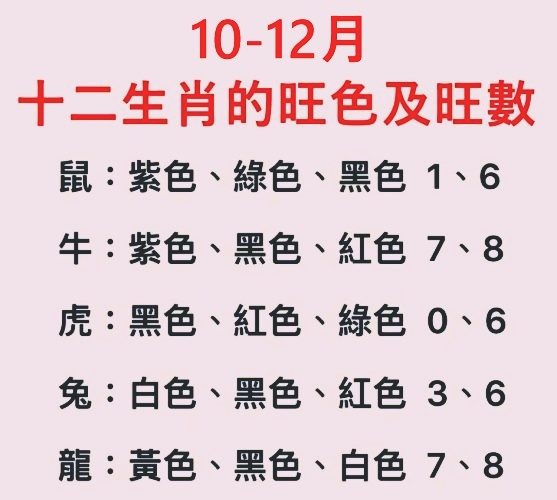十二生肖10-12月穿對幸運顏色數字 好運到年底!