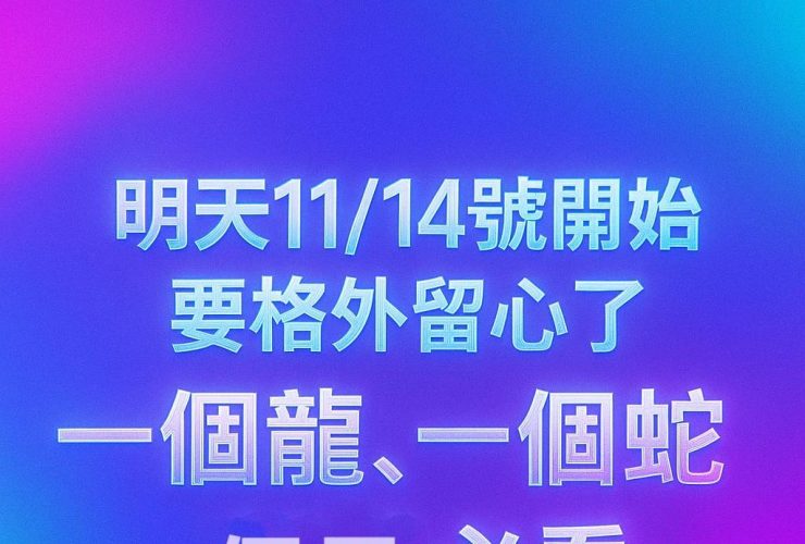 明天11/14號開始要格外留心了,一個龍,一個蛇,一個馬必看