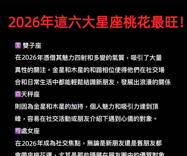 2026年這六大星座桃花最旺!