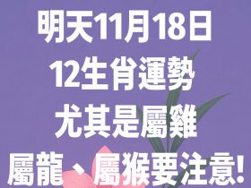 明天11月18日12生肖運勢 尤其是屬雞、屬龍、屬猴要注意!