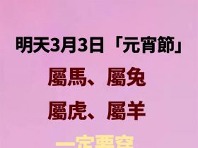 明天3月3日「元宵節」屬馬、屬兔、屬虎、屬羊一定要穿「這顏色的衣服」從年頭旺到年尾