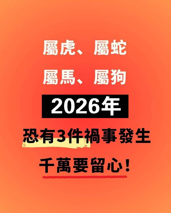 「 屬虎、屬蛇、屬馬、屬狗」2026年恐有3件禍事發生,千萬要留心!