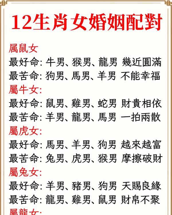 最佳婚配:屬鼠男、屬龍男