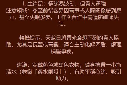 B:此生,你口福不淺,更有子孫滿堂之福。你對美食的熱愛,讓你成為品味生活的美食家。而你善良、寬容的性格,謙遜待人的態度,使得你的孩子都對你敬愛有加。此生,或許你無法大富大貴,但幸福安逸的生活定會屬於你。