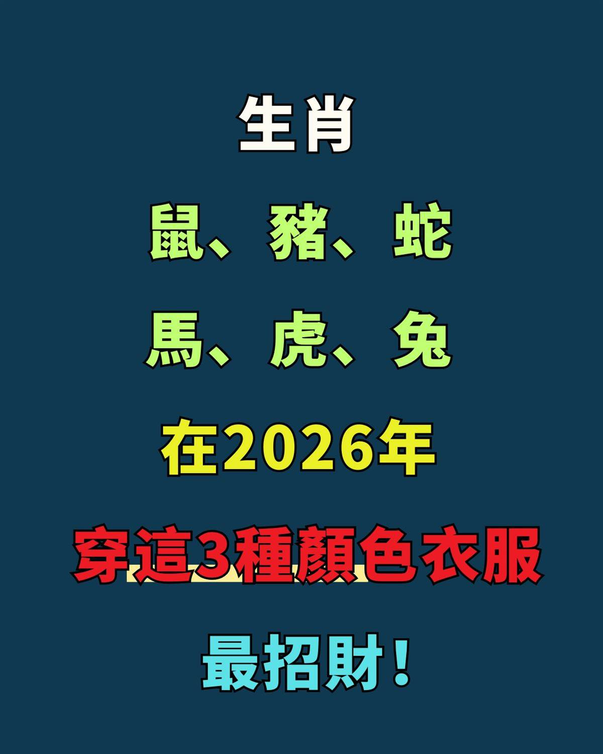 特別是生肖鼠、豬、蛇、馬、虎、兔,在2026年若能多運用以下這3種招財顏色,對正財、偏財與整體運勢都有加分效果。