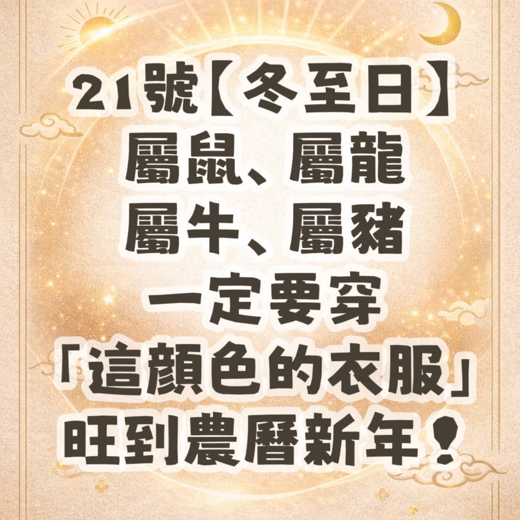 ❄️ 冬至轉運:四生肖必穿「開運色」旺到春節