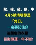 生肖屬蛇注意!絕對不能和這五大生肖在一起,要聽老人言! Posted by 小紀 四月 4, 2026 屬蛇的人絕對不能和這五大生肖在一起,要聽老人言! 時間是個好東西,驗證了人心,見證了人性,懂得了真的,明白了假的,沒有解不開的難題,只有解不開的心緒。 沒有過不去的經歷,只有走不出的自己。 我總是擔心會失去誰,可我卻忘了問,又有誰會害怕失去我?人生,努力了、珍惜了、問心無愧,如此,就好。 屬蛇:工作防被同事利用 在今年年中下旬,屬蛇的人受到「將星」的庇佑,事業上將會大展宏圖,升職加薪有望,只要加把勁努力,就離成功不遠。 但是要擔心工作當中恐有小人,一些不熟悉的同事會成為自己的死對頭,在工作即將有成就的時候要留意一些細節,否則可能會被利用,自己的勞動成果有可能會被竊取。2017年,屬蛇的人還要遠離各種酒肉朋友。 冤家生肖:生肖豬 屬蛇遇屬豬:相互尊敬,而且有共同的利益所在,沒有很大的沖突,和諧度良好,會友好的合作。 事業合作緣分:可能成為朋友,但是也可能不能,只有時間才能判定。 生肖蛇和生肖豬溝通不順暢,因此雙方發生分歧和隔閡的可能性比較大,有誤會也不能夠及時解決,所以在工作上容易產生問題。 戀愛婚配緣分:生肖豬不太能忍受生肖蛇的脾氣,需要及時去調整。 冤家生肖:生肖雞 生肖蛇和生肖雞兩人都看對方不對盤。 生肖雞的好勝心強,事事爭第一,而生肖蛇卻是天生聰明過人,不用怎麼努力就有成就,這讓生肖雞覺得很不是滋味,凡是生肖蛇的意見觀點,他肯定會反駁或是不認同,總之就一定要找對方缺點。 當然這也讓生肖蛇對他心存恨意。 冤家生肖:生肖猴 對於生肖蛇和生肖猴來說,性格是讓他們貌合神離最大的「元兇」。 肖蛇人做什麼事情都很認真,喜歡講究計劃同時非常討厭意外變故,而肖猴人有著典型的自由散漫性格,從來不會去深入思考。 由於兩人都很聰明,可謂是王見王,即使做成朋友,但卻不一定能夠在感情中相互扶持。 閱讀全文 (202) 小紀 四月 4, 2026