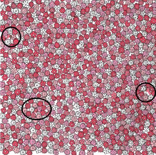 一開始,我瞧著哪哪都是花,小雞影子都沒見著,心里直犯嘀咕:「這小雞不會隱身吧?」後來慢慢找,眼睛都不敢眨,突然發現一朵粉色小花旁邊,有個小雞形狀的空白,仔細看,還真有只小雞!接著找,又在紅色花朵堆里,和白色小花叢中,各發現一只。