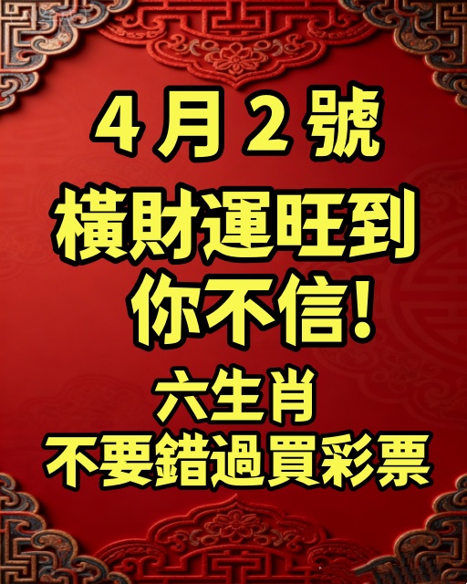 今天(4月2日)不只是普通的一天,而是「偏財能量大爆發」的好時機,想中獎、想翻身、想來點意外之財的人,一定要把握!