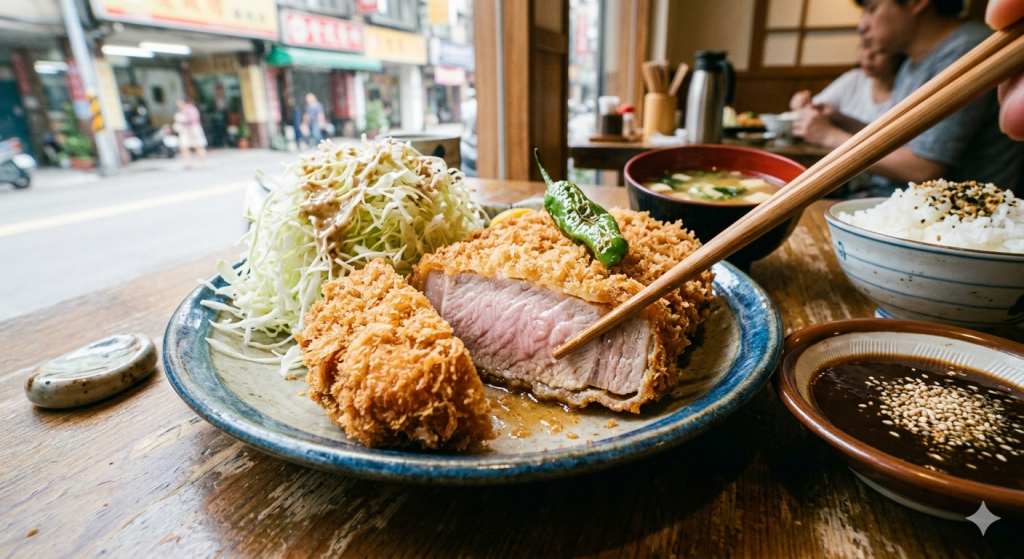B. 一塊表皮金黃酥脆、咬下多汁的「厚切炸豬排」