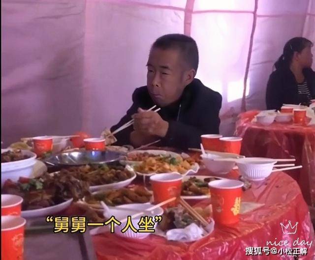 從畫面中可以看到,這個舅舅吃的都是別人剩下的,並未另外給他安排一桌,與其說是單獨招待,還不如說他是想羞辱舅舅。