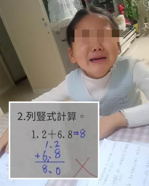 小學生「1.2+6.8=8」被打叉,家長提出質疑