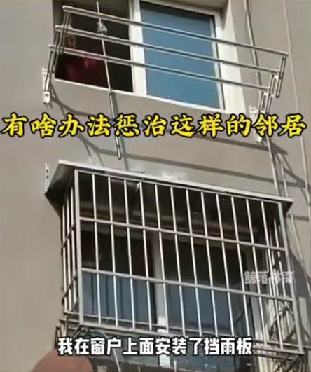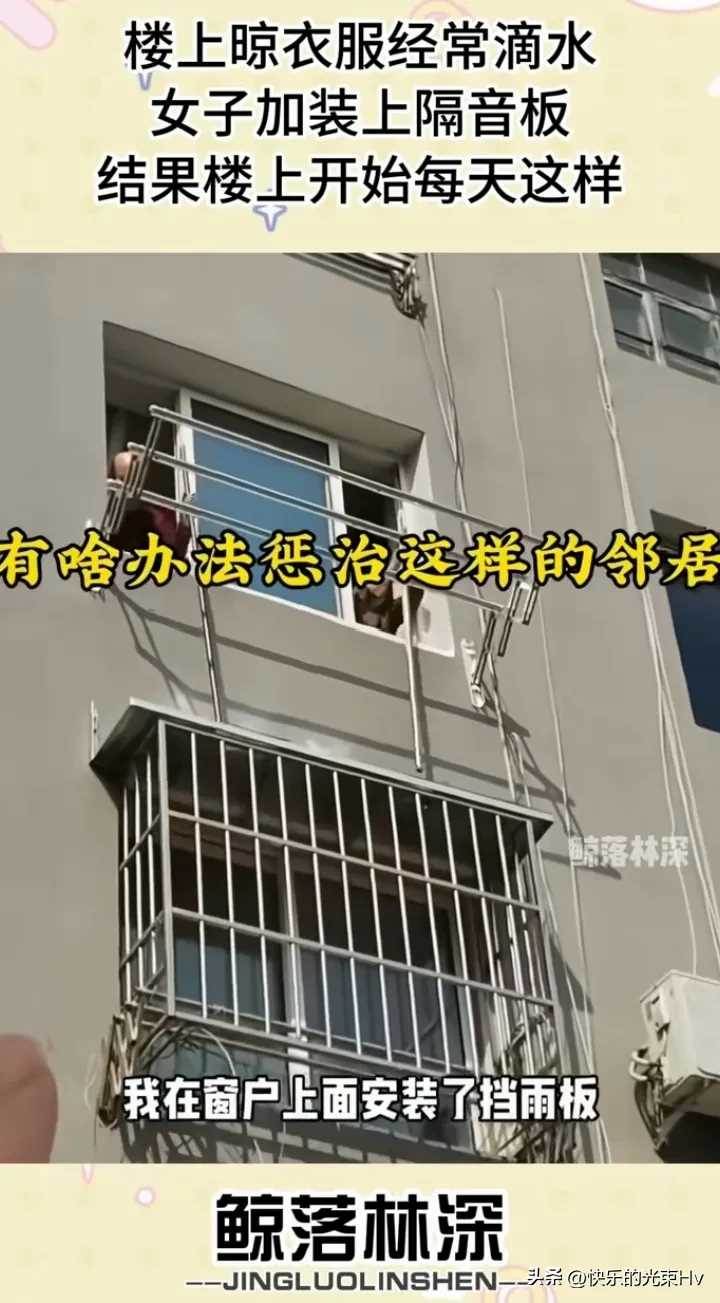 事件的起因看似簡單:樓上住戶習慣在陽台隨意晾曬衣物,水滴常常不受控制地落到樓下。樓下鄰居不堪其擾,便在自家防盜窗上安裝了隔音板。這本是出自我保護的舉動,卻立刻引發了樓上的強烈不滿 —— 他們認為隔音板占據了部分空間,影響了晾曬的便利性,于是開始用各種方式破壞樓下的設施。