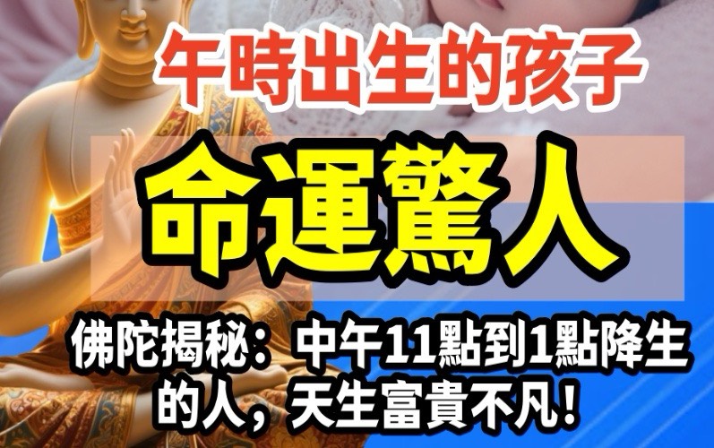 民間常說「午時開財門」,而佛經中也提到「正午一刻,是諸天善神降福之時」,意味著此時出生的孩子,帶有先天的「福報記號」。
