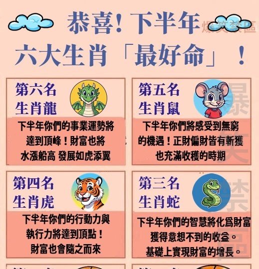 下半年最好命的六大生肖: