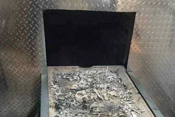 燃燒40分鐘到一個小時,就可以推出來了。骨灰不是粉狀的。這是一塊骨頭。