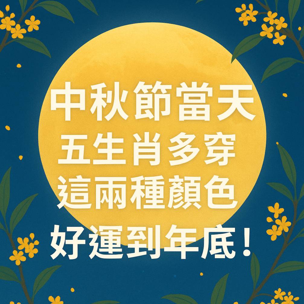 中秋佳節(10月6日,週一)是月圓人團圓的吉日,也是積聚福氣、轉化運勢的絕佳時機!根據傳統命理和五行生旺法則,以下五大生肖若在中秋節當天,特別是賞月或與家人團聚時,多穿這兩種旺運色系的衣服,將能有效吸收月圓的吉祥能量,讓好運勢一路旺到年底,財運、事業、情感皆順利!