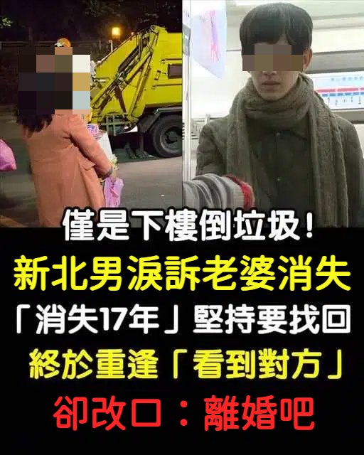 據了解,黃女被找回後,整個人對家人的態度明顯變得冷淡,吳男也不明所以。沒想到同年7月,她又跟家人說要「下樓倒垃圾」,結果一去不回,再度人間蒸發。吳男再次報案,希望能找回太太,但這一消失就是好幾年。直到2007年才終於又找到她,但這次重逢,卻讓他徹底心寒。
