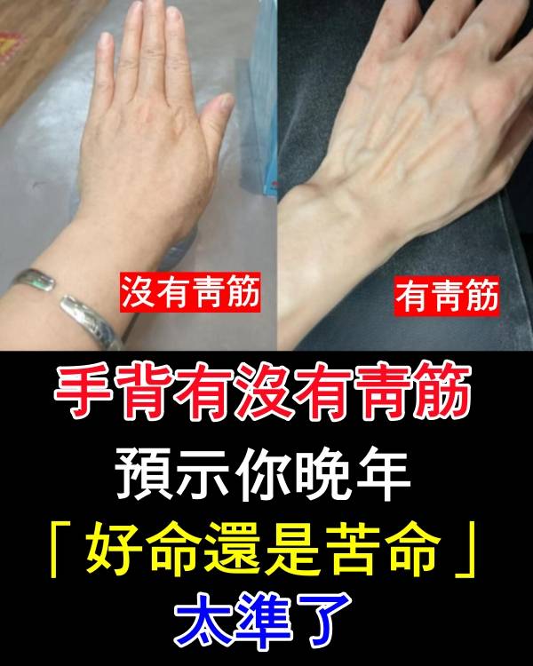 手背青筋雖只是身體表徵的一部分,但從命理角度來看,確實能反映晚年的生活狀態。想要晚年好命,不僅要留意手相的訊號,更要結合日常養生、理財與家庭經營。