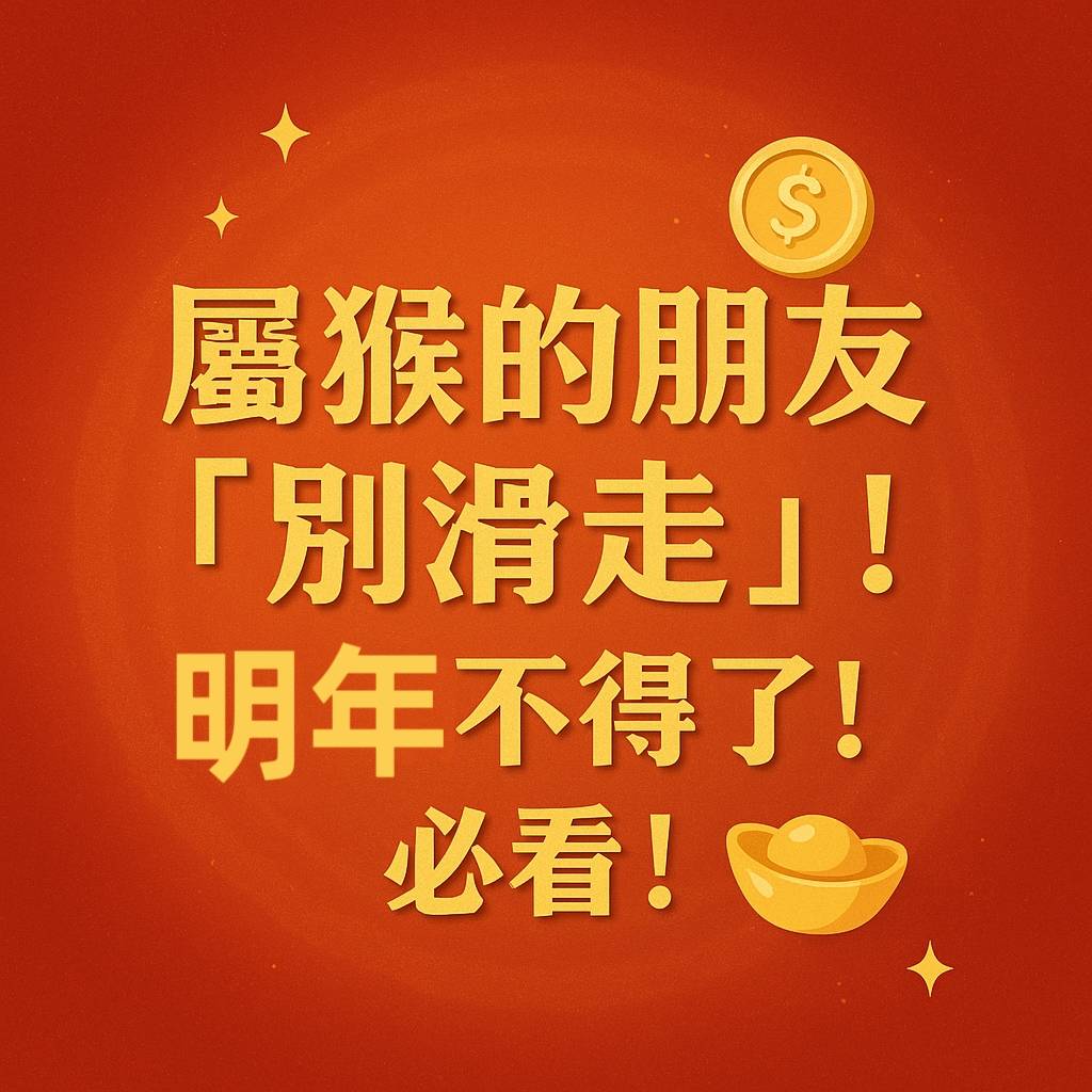 回顧今年,你可能在某些時刻經歷了起伏或挑戰。但請你將所有的壓力與不順留在 2025 年!因為根據流年運勢推算,進入即將到來的 2026 丙午馬年,屬猴的朋友將迎來一次運勢的大爆發和全面反轉,機遇多到讓你應接不暇!