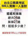 台北公務員考試:500人竟無一人答對!姐姐多少歲?